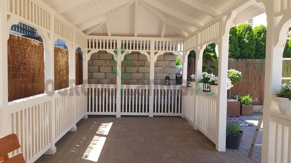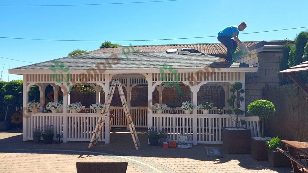 Altana White House może być wykończona wedle indywidualnego projektu, więc idealnie dopasowuje się do przestrzeni, w jakiej ma stanąć. Jest również idealną odpowiedzią na oczekiwania klientów, oczekujących wysokiej jakości wykonania i trwałości materiałów. Oferujemy kilka wariantów dodatkowych, poprzez które można zdecydować o sposobie wykończenia dachu, zabudowy boków altany, czy wyposażeniu altany w podest lub orynnowanie. Elementy indywidualnie dopasowywane do oczekiwań powodują, iż altana staje się spełnieniem marzeń.