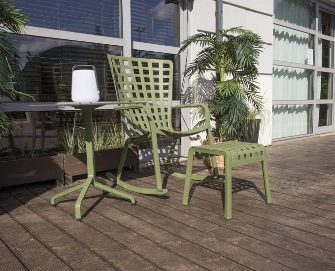 Ażurowy fotel bujany Folio Nardi to model mebla ogrodowego, w którym można się rozsiąść w dowolnej pozycji. To także owoc twórczości projektanta Rafaello Galiotto, który opracował system regulowanego oparcia w dwóch pozycjach. Dzięki czemu każdy dostosuje odpowiedni wariant do własnych potrzeb i preferencji.