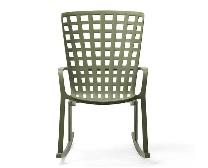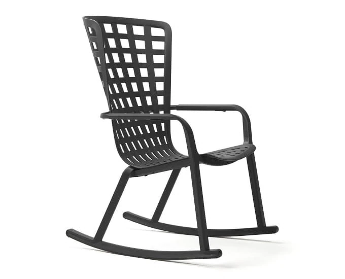 Ażurowy fotel bujany Folio Nardi dostępny jest w kilku wariantach kolorystycznych, co zdecydowanie ułatwia wkomponowanie go w wiele przestrzeni oraz zestawienie z innymi dodatkami.