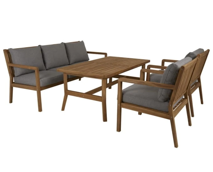 Sofa ogrodowa Kornell posiada solidną, drewnianą konstrukcję, wykonaną z drewna teak. Posiada ono wiele cennych właściwości, dlatego też producenci bardzo często wykorzystują go w swoich wyrobach. Teak nie ulega deformacjom, nie blaknie pod wpływem promieniowania słonecznego, jak również nie stanowi pożywienia dla korników i innych szkodników. Ponadto nie wymaga impregnacji, ani zabiegów pielęgnacyjnych.