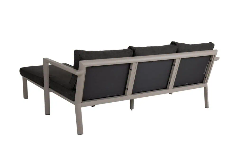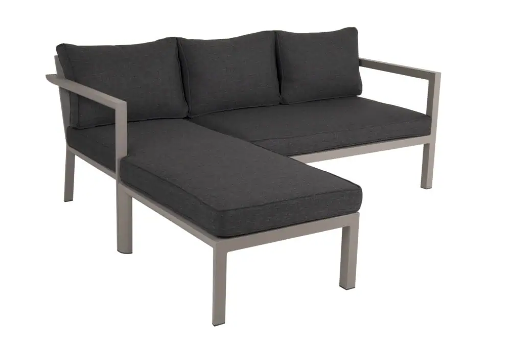Narożnik Delia to idealny mebel na mały taras lub balkon. Wygodny do wypoczynku przy stoliku kawowy, jak i w pozycji leżącej w czasie opalania czy drzemki.