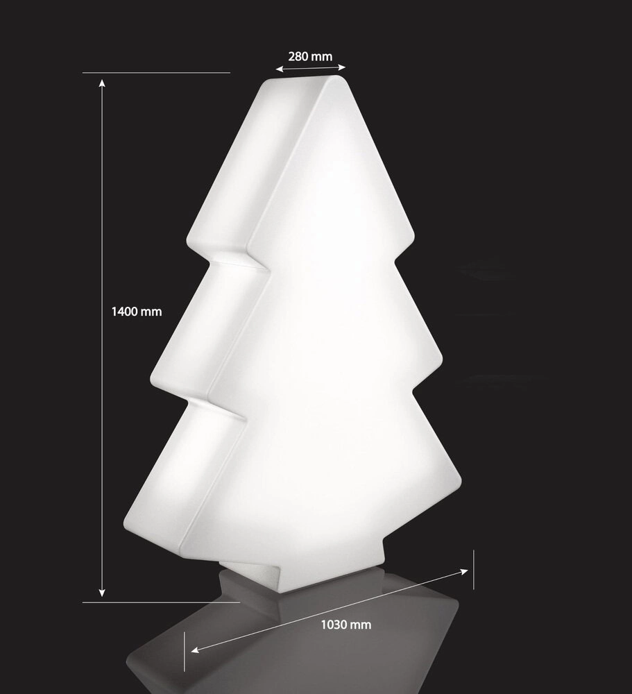 Świecąca choinka w naturalnym białym kolorze, emitująca światło ciepłe lub zimne lub mieniące się różnymi kolorami (w wersji z żarówką RGB), będzie doskonałą ozdobą sklepów, kawiarni, restauracji, hoteli, ale udekoruje również prywatne strefy – dom, taras czy balkon.
