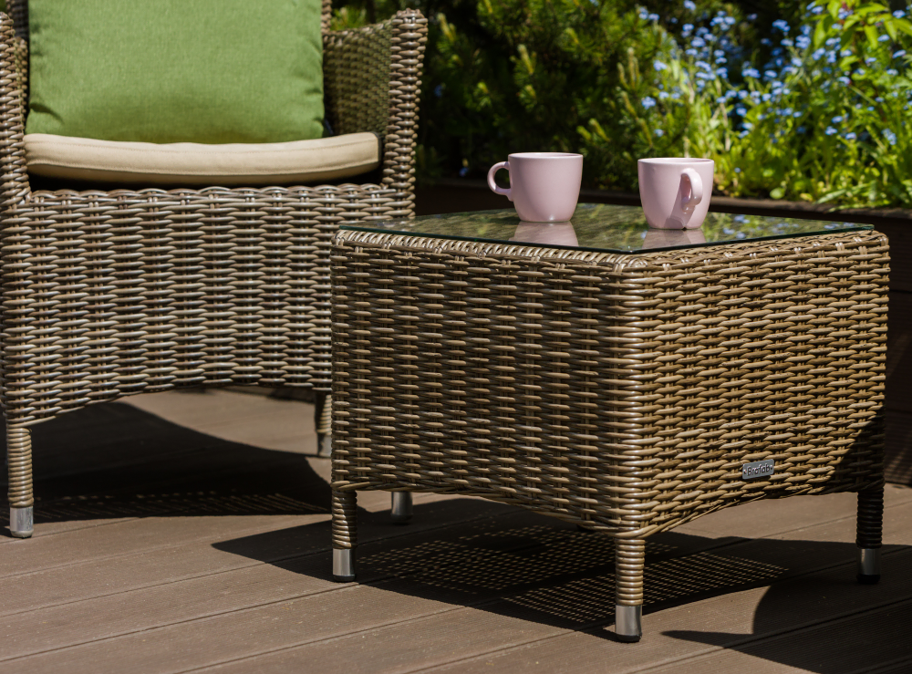 Zestaw mebli dla dwojga Le Mans wyróżnia się spośród innych mebli swoją charakterystyczną fakturą. Zawdzięcza ją technorattanowej plecionce, o niejednolitym zabarwieniu. Technorattan to postępowe tworzywo, przypominające naturalny rattan. Jest jego doskonałą imitacją, o większej odpornośći na negatywny wpływ warunków atmosferycznych oraz uszkodzenia mechaniczne. Technorattan jest odporny na duży nacisk i z łatwością można go utrzymać w czystości. Dzięki czemu tak często jest wykorzystywany do produkcji wyposażenia zewnętrznego i nie tylko.