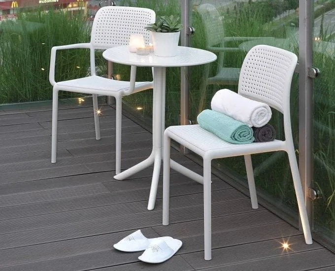 Zestaw dla dwojga Step-Bora, składa się ze stolika z regulowaną wysokością i dwóch wygodnych krzeseł. Wszystkie meble w zestawie wykonano z solidnego, trwałego tworzywa, które doskonale radzi sobie w warunkach zewnętrznych. Małe wymiary powodują, że meble idealnie sprawdzą się nawet na balkonie. Dostępny aż w 7 kolorach zestaw doskonale trafi w gusta każdego. Doskonałe meble zarówno do kawy jak i smacznego posiłku czy relaksu.